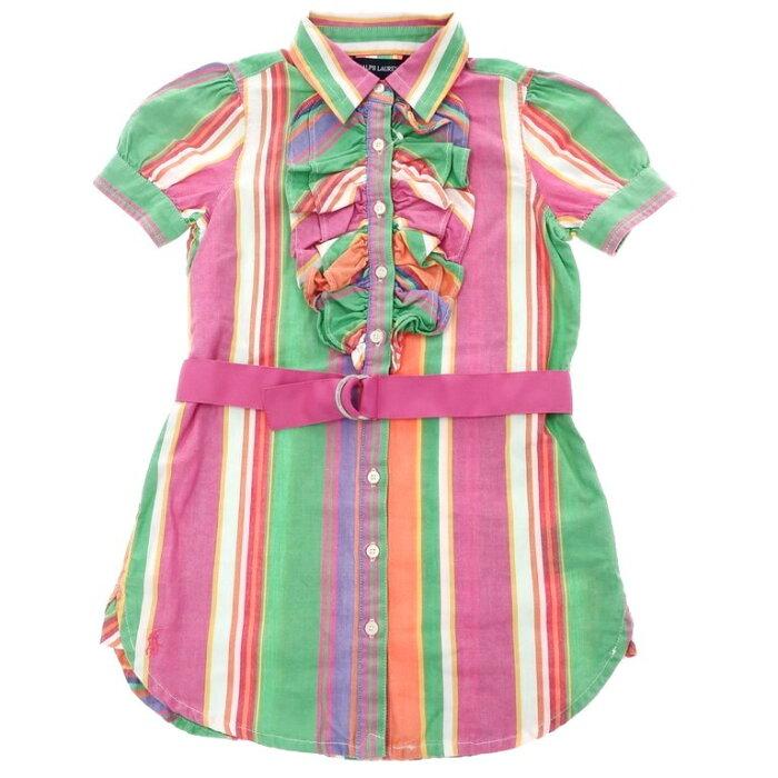 【中古】ラルフローレン Ralph Lauren オックスフォードコットン ストライプ シャツワンピース グリーン×ピンク×オレンジ【サイズ4/4T】【GRN】【S/S】【状態ランクB】【キッズ】【50104-955631】