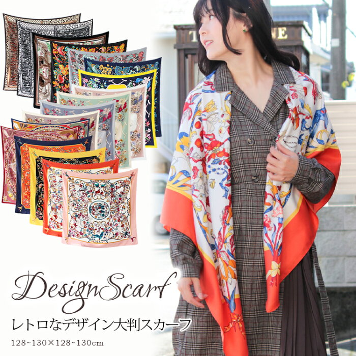 シンプルトップスを盛り上げてくれる色使いで、 おしゃれ上級者のトレンドアイテムになります 上品な柄と色だから、それだけでコーデが際立ちます サイズ 約128〜130cm×約128〜130cm 素材 ポリエステル60%、シルク40% (一部カラーにSILK100%表示のタグ間違いがある場合がございます。