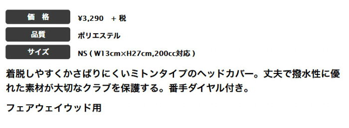 【FG】2021年モデル アディダス ゴルフ23162 ヘッドカバー FW フェアウェイウッド用 (200cc対応)